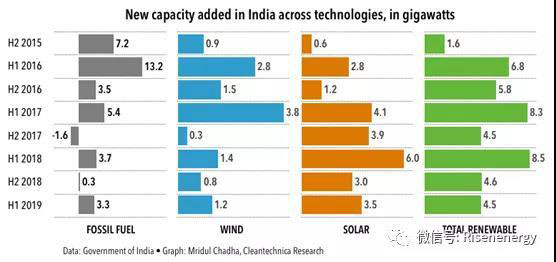今年上半年,太陽(yáng)能發(fā)電技術(shù)對(duì)印度新增發(fā)電能力的貢獻(xiàn)最大。在2019年1月至6月期間增加的7.8吉瓦新增產(chǎn)能中,太陽(yáng)能占3.5吉瓦。