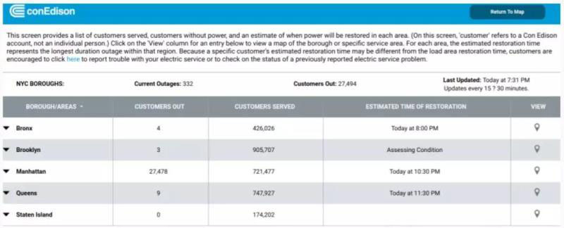 停電發(fā)生于紐約當?shù)貢r間7月13日星期六晚上6點47分,當時紐約市的溫度攝氏28度。電力公司Con Edison表示停電波及范圍主要是在曼哈頓中城的西側(cè),從時代廣場到第72街和百老匯的30個區(qū)塊內(nèi)到洛克菲勒中心,73,000名客戶受影響超過3個小時。