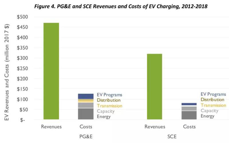 對(duì)電力公司而言,電動(dòng)車(chē)是不是“賠本”買(mǎi)賣(mài)?美國(guó)加利福尼亞州的兩家電力公司——Pacific Gas & Electric和Southern California Edison (SCE)——實(shí)際數(shù)據(jù)來(lái)了。在這兩家公司的服務(wù)范圍內(nèi),約有38萬(wàn)輛電動(dòng)汽車(chē)。大部分的電動(dòng)汽車(chē)車(chē)主在電力需求低谷(夜間)充電,而此時(shí)供電公司的供電邊際成本非常低,因此電力公司獲利頗豐。2012-2018年期間,兩家公司因?yàn)殡妱?dòng)汽車(chē)充電獲得的額外售電收入與為電動(dòng)汽車(chē)充電服務(wù)付出的成本相比超出5.84億美元。