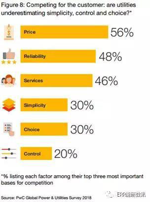 我們的調(diào)查展示了電力公司高管對這一點的理解程度(圖7)。一方面,對簡單交互的需求是高管們認(rèn)為客戶正在尋找的最重要的特性之一。另一方面,讓客戶了解消費是最不重要的。不到三分之一的調(diào)查參與者將簡單性、可選擇性和操控性這三個因素列為爭奪客戶時最重要的三個因素(圖8)。