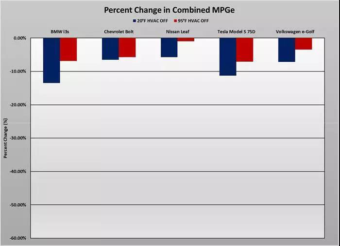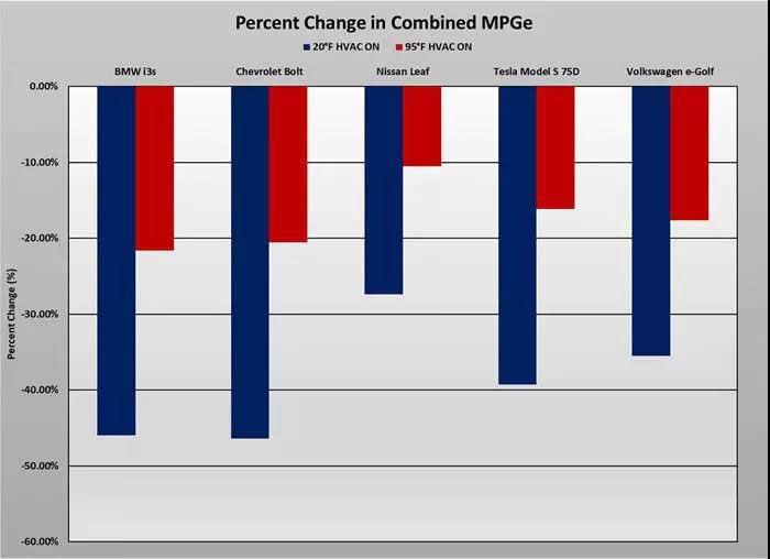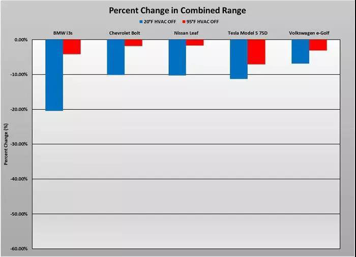 「我們發(fā)現(xiàn)溫度對(duì)于電動(dòng)汽車(chē)的影響遠(yuǎn)遠(yuǎn)超出我們的預(yù)期,」AAA 汽車(chē)工程總監(jiān) Greg Brannon 說(shuō),「對(duì)于所有計(jì)劃部署推出電動(dòng)汽車(chē)的制造商來(lái)說(shuō),這是他們必須要處理的事情?!笰AA 總共測(cè)試了 BMW i3,雪佛蘭 Bolt EV,日產(chǎn) Leaf,特斯拉 Model S 和大眾電動(dòng)高爾夫這五款來(lái)自不同品牌的電動(dòng)車(chē)型。AAA 的工程師對(duì)每輛車(chē)分別進(jìn)行了 20°F(約零下 6.7°C)以及 95°F(35°C)的環(huán)境下的測(cè)試。