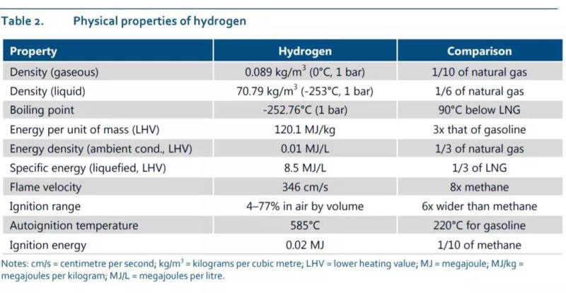 根據(jù)國際能源署匯總數(shù)據(jù),氫氣與天然氣相比,有以下的不同: