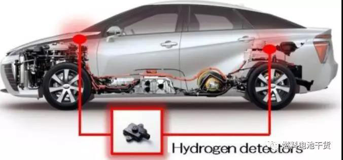 Mirai燃料電池車上氫氣濃度傳感器位置(示意用,非準確位置)