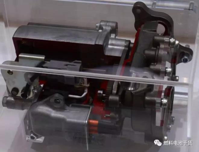 為了將電堆陽極出口出沒有參與內部電化學反應的氫氣再次循環(huán)至電堆,提高燃料利用率和優(yōu)化水管理,豐田自動織機開發(fā)了氫氣循環(huán)泵,該氫氣循環(huán)泵的高效工作使得Mirai燃料電池汽車取消了加濕器,這在全球尚屬首次。