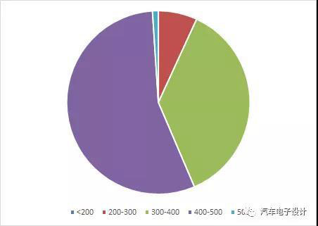 2019年1-4月的目前中國市場根據(jù)里程的產(chǎn)量分布,如下圖所示,在300公里以下的車型里面,SGMW的E200占了75%,往城市通勤用的車基本已經(jīng)躍遷到了400公里以上了。
