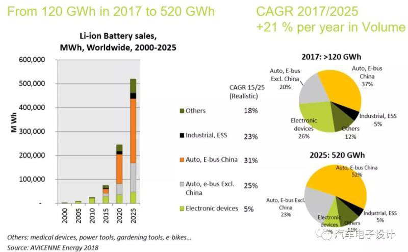 AVICENNE把全球動力電池的增量需求,主要是分析來自中國的乘用車和商用車,與之相比全球其他地區(qū)的動力電池需求大概是這個1/3,而工業(yè)應(yīng)用(各類工具+ESS)全部加上也就是和消費(fèi)類的相比擬。