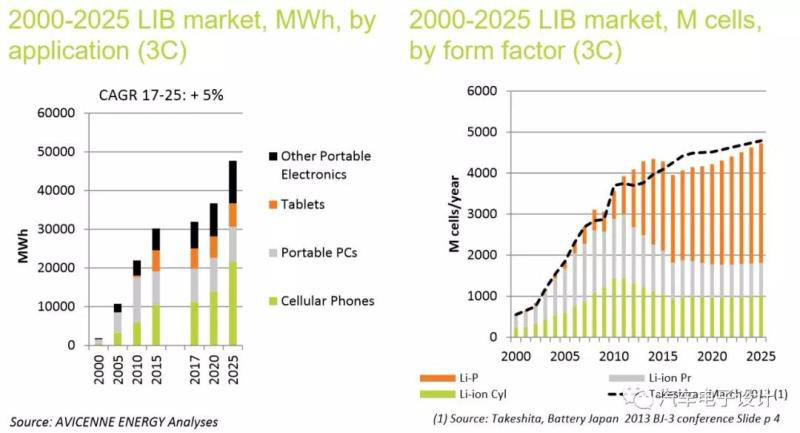備注:小型鋰電在3C里面應(yīng)用,Avicenine的預(yù)測是45億只,對比2018年的實(shí)際數(shù)據(jù)要少一些,因此估算下實(shí)際可能突破60億只,但是隨著手機(jī)的見頂,這個數(shù)據(jù)也上不去。