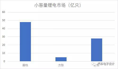 小容量鋰電主要是指數(shù)碼消費(fèi)類使用的電芯,還有一部分用于電動汽車的圓柱電池,如下所示,由于特斯拉巨大貢獻(xiàn),全球大約做了近50億只電芯。