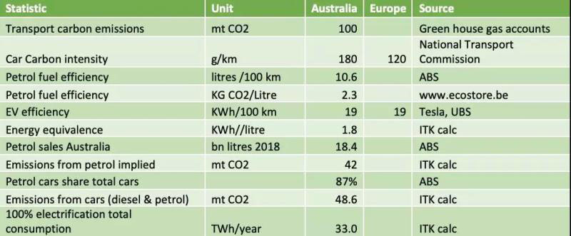 根據(jù)澳大利亞reneweconomy.com.cn網(wǎng)站的匯總,2018年澳大利亞交通領(lǐng)域碳排放、汽車油耗、電動(dòng)車效率的關(guān)鍵數(shù)據(jù)如下: