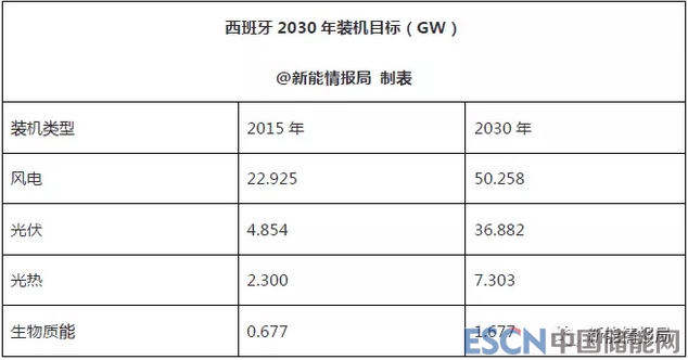 西班牙風(fēng)電、光伏、光熱及生物質(zhì)能2030年裝機(jī)目標(biāo)如下: