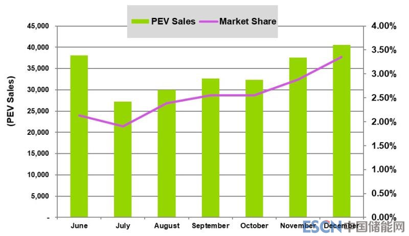 總體而言,12月插電式電動汽車的銷量占?xì)W洲所有汽車銷量的近3.4%。