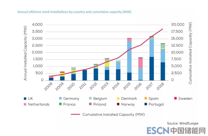 中國(guó)儲(chǔ)能網(wǎng)訊:根據(jù)歐洲風(fēng)能交易機(jī)構(gòu)WindEurope公布的新數(shù)據(jù),歐洲在2018年新增海上風(fēng)電總裝機(jī)容量為2.6吉瓦(GW),使該地區(qū)的總裝機(jī)容量達(dá)到18.5吉瓦。