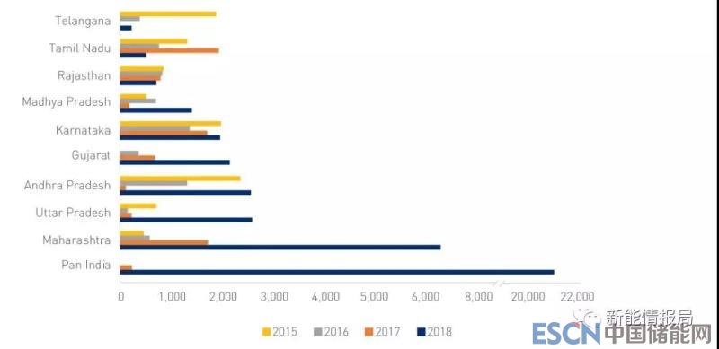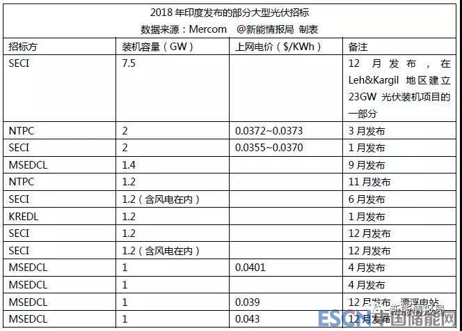 Mercom匯總的2018年印度部分大型光伏招標(biāo)信息如下: