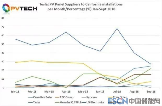 2018年7月,由于所有第三方供應(yīng)商的份額下滑,特斯拉品牌組件在供應(yīng)商總組合中的實際占比為68%。