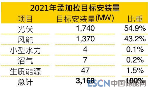 孟加拉政府在2021年愿景計(jì)劃(Vision 2021)中訂定3,168MW的再生能源目標(biāo)安裝量,屆時(shí)預(yù)計(jì)能滿足國(guó)內(nèi)10%的發(fā)電量,其中推動(dòng)的項(xiàng)目著重在光伏和風(fēng)力,兩者分別訂定1.74GW和1.37GW的目標(biāo)。