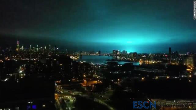 據(jù)了解,變壓器爆炸產(chǎn)生的藍光在新澤西與曼哈頓都可以看到。而許多網(wǎng)民也紛紛在社交媒體上上傳紐約夜空出現(xiàn)的藍光照片和視頻。
