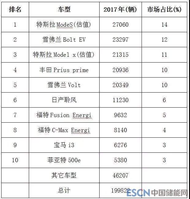 與這份預(yù)測相應(yīng)的是,2017年美國新能源(純電動和插電式混合動力)乘用車銷量近20萬輛,年比增長26%,市場份額被推升至1.2%,首次突破關(guān)口1%。