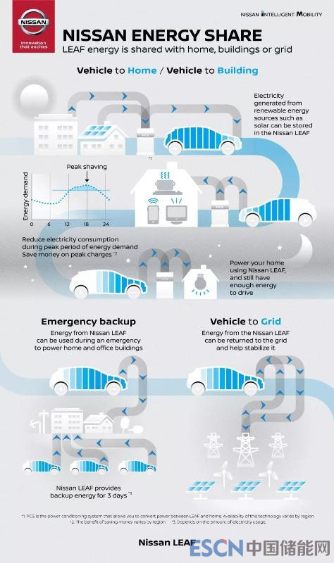 美國(guó):在田納西州弗蘭克林,日產(chǎn)北美將試用Leaf車(chē)輛,以協(xié)助在電力需求高峰時(shí)期為期總部設(shè)施供電,預(yù)計(jì)可顯著節(jié)省成本;