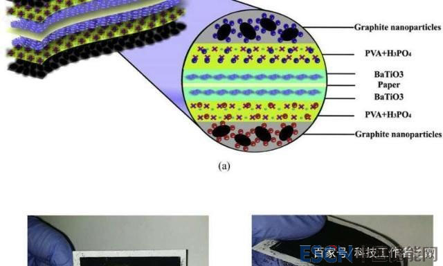 碳納米管具有良好的導(dǎo)熱、導(dǎo)電和儲(chǔ)能性質(zhì)。雖然它的強(qiáng)度很高,但卻兼有出色的柔性。阿瓦爾博士的團(tuán)隊(duì)對商用超級電容器的結(jié)構(gòu)進(jìn)行了調(diào)查研究,進(jìn)而制造了一種基于碳納米管紙的復(fù)合層電容紙。為了分隔復(fù)合層,他們了使用經(jīng)濟(jì)性的鈦酸鋇。這種復(fù)合層超級電容紙即使被折疊起來,也能有效存儲(chǔ)能量。