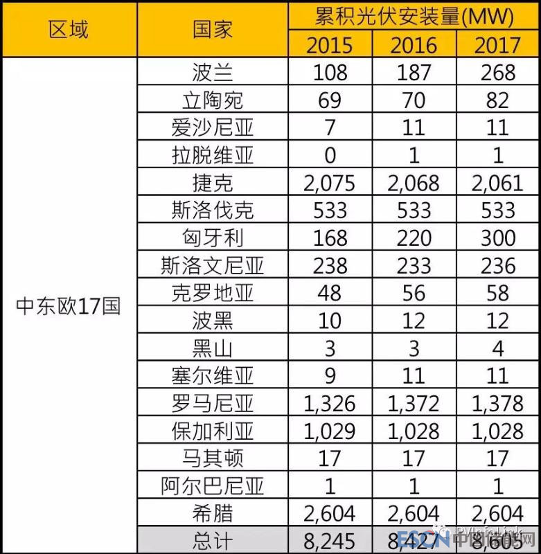 在光伏發(fā)展上,2017年中東歐的光伏累積安裝量已達8,605MW,2015-2017年累積安裝量成長率為4.36%,中東歐17國當(dāng)中,雖然保加利亞、捷克和斯洛伐克等國家目前的光伏發(fā)展已呈現(xiàn)停滯的現(xiàn)象以及愛沙尼亞、拉脫維亞、克羅地亞、波黑、黑山、塞爾維亞和阿爾巴尼亞并未在光伏產(chǎn)業(yè)上有所著墨。但仍有其他國家如波蘭、立陶宛、匈牙利和斯洛文尼亞等國支撐著中東歐地區(qū)光伏產(chǎn)業(yè)的發(fā)展,他們也是推升2015-2017年光伏安裝量成長的原因。希臘雖然目前仍受歐債危機的影響,但已針對光伏產(chǎn)業(yè)發(fā)展制定相關(guān)推動政策。