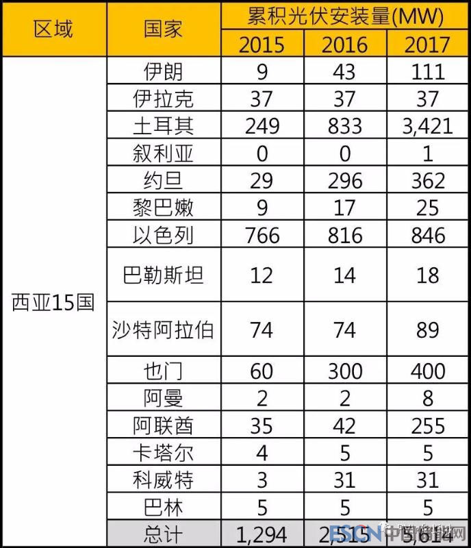 在光伏產(chǎn)業(yè)的發(fā)展上,整體西亞地區(qū)2017年累積光伏安裝量達5,614MW,其中以土耳其發(fā)展最為快速,累積安裝量至2017年已達3.4GW,占當(dāng)年度西亞地區(qū)累積安裝量的60.9%,但其他國家并非讓土耳其專美于前,多個西亞國家也深知再生能源發(fā)展的重要性,因此也制定了未來再生能源的發(fā)展計劃,而光伏在各國再生能源發(fā)展計劃中扮演了重要的角色。
