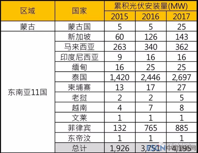 1.東南亞11國和蒙古地區(qū)累積安裝量