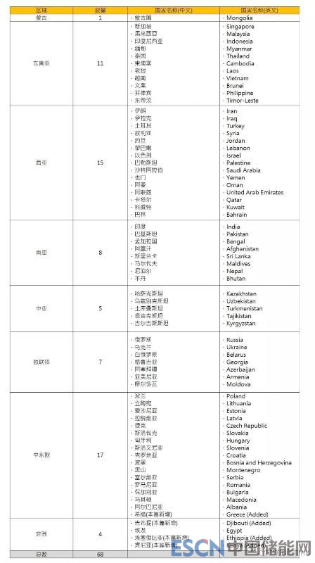 一帶一路政策版圖橫跨歐亞非三大州共68個國家且目前尚在增加當(dāng)中,同時全部沿線國家以區(qū)域進行分類能了解每個區(qū)域發(fā)展光伏產(chǎn)業(yè)的動能和潛力皆有所不同。