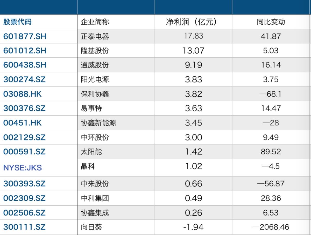 在第一財(cái)經(jīng)記者統(tǒng)計(jì)的14家主要上市公司中,有5家凈利同比下滑。其中保利協(xié)鑫能源控股有限公司(03800.HK,下稱,保利協(xié)鑫)上半年凈利潤(rùn)下滑68.1%,主營(yíng)太陽(yáng)能電池及組件的向日葵(300111.SZ)上半年虧損額為1.94億元人民幣,同比下降2068%。