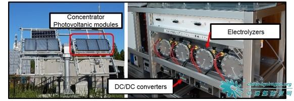 研究人員利用宮崎大學開發(fā)的高效聚光光伏電池(輸出功率為470 W)成功的電解了水,以18.8%的效率將太陽能(日平均值)轉(zhuǎn)換為氫能,這是室外實驗中實際系統(tǒng)所達到的最高效率。