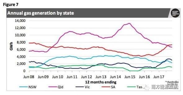 過去一兩年,南澳大利亞州的燃?xì)獍l(fā)電量有所增加,但仍低于10年前的水平。由于價(jià)格昂貴,這可能會刺激更多的投資在存儲方面。