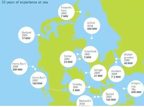 丹麥已投運(yùn)、已批準(zhǔn)或在建的海上風(fēng)電場包括406.7MW的Horns Rev 3、650MW的Kriegers Flak,以及Vesterhav Syd和Vesterhav Nord近岸風(fēng)場。