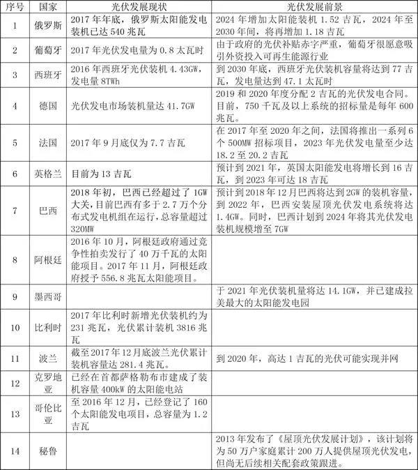 2018年3月,法國(guó)政府明確表示要大力發(fā)展太陽(yáng)能產(chǎn)業(yè),其發(fā)展目標(biāo)有:2023年光伏發(fā)電量至少達(dá)18.2至20.2吉瓦,而截止2017年9月底僅為7.7吉瓦。法國(guó)政府將把光伏發(fā)電量提高2-3倍,同時(shí)到2030年法國(guó)可再生能源發(fā)電量將占總量的32,而目前僅為16%。由此可見(jiàn),法國(guó)電力市場(chǎng)中的光伏需求量還有非常大的缺口。在2017年至2020年之間,法國(guó)將推出一系列6個(gè)500MW招標(biāo)項(xiàng)目,以提高太陽(yáng)能光伏產(chǎn)業(yè)的比重,改變核電占比過(guò)大的現(xiàn)狀,增加綠能發(fā)電的數(shù)量。