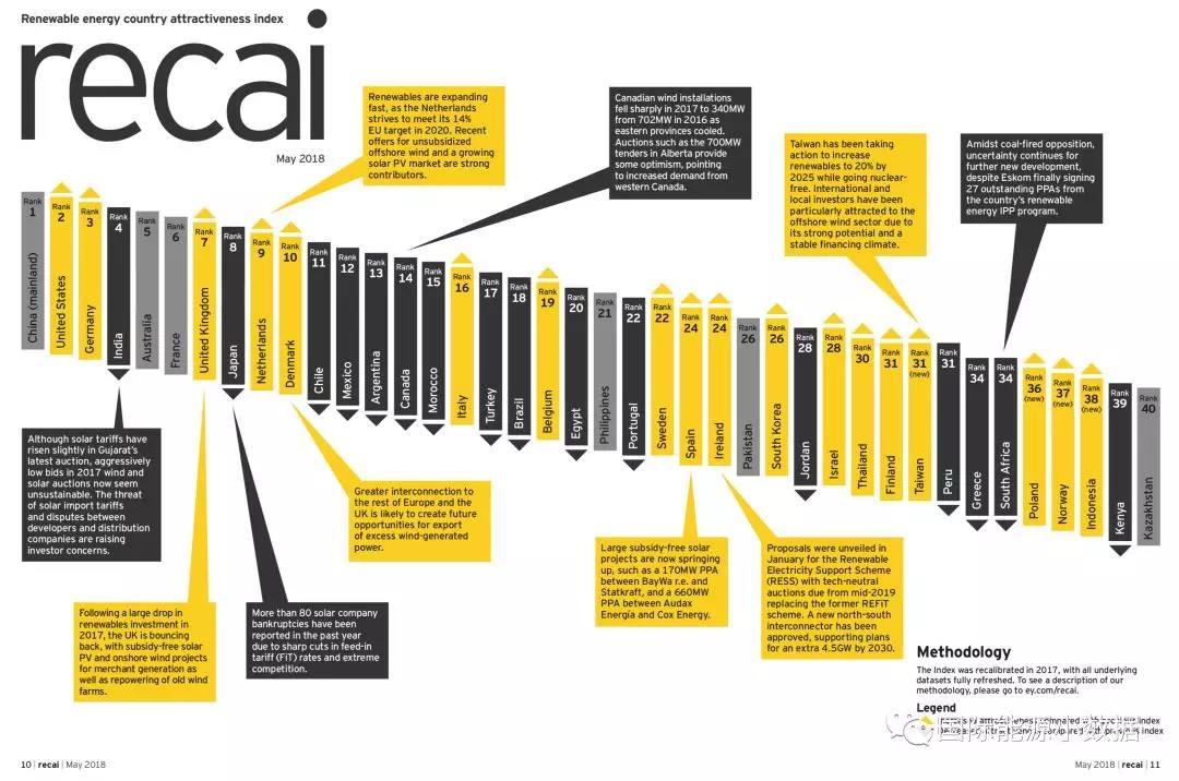按照以上指標(biāo)評(píng)估,在39個(gè)國(guó)家和地區(qū)里中國(guó)高居榜首,其他排在第2位到第10位的國(guó)家是:美國(guó)、德國(guó)、印度、澳大利亞、法國(guó)、英國(guó)、日本、荷蘭、丹麥。