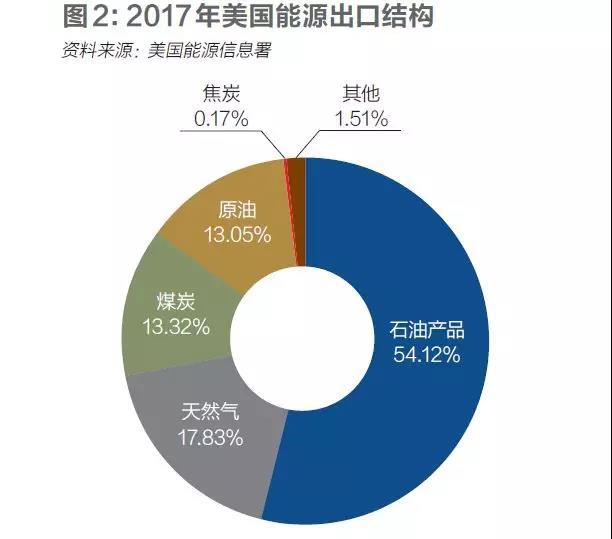 2011年,美國(guó)就成為石油產(chǎn)品的凈出口國(guó),2017年又成為天然氣的凈出口國(guó)。目前,除仍?xún)暨M(jìn)口原油外,美國(guó)已成為煤炭、焦炭、石油產(chǎn)品、天然氣和生物質(zhì)能的凈出口國(guó)。