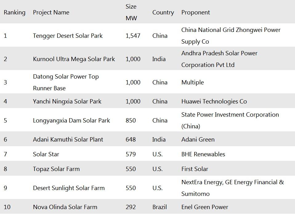 根據(jù)IEEFA的統(tǒng)計,全球最大的經(jīng)營實用規(guī)模的太陽能項目集中在中國和印度,包括: