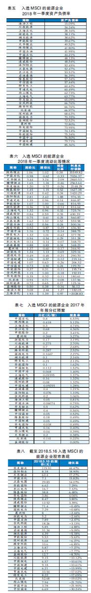 從這次入選MSCI的能源企業(yè)來看,顯然,MSCI非常關(guān)注電力和新能源相關(guān)行業(yè)企業(yè);而綜合行業(yè)發(fā)展前景、市場關(guān)注度及企業(yè)2018年一季度的經(jīng)營業(yè)績、償債能力、分紅和股市表現(xiàn)等因素,陜西煤業(yè)、贛鋒鋰業(yè)、天齊鋰業(yè)、正泰電器、隆基股份和洛陽鉬業(yè)等企業(yè)的股價并未完全反應(yīng)其企業(yè)基本面情況,6月“入摩”以后這些企業(yè)的股價或許有較大的上漲空間,更值得關(guān)注。