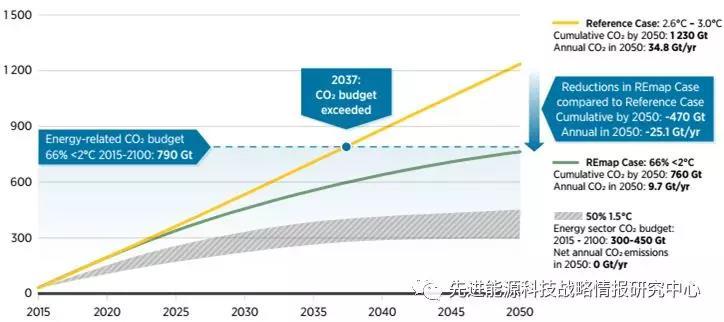 圖1 2015-2050年與能源相關(guān)的二氧化碳排放累計(jì)限額(十億噸CO2)