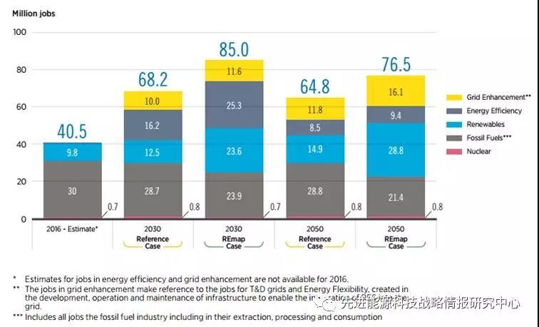 圖3 2016年、2030年和2050年能源行業(yè)的就業(yè)情況(單位:百萬(wàn)人)