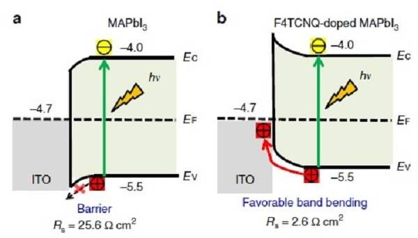 (b)空穴在ITO/F4TCNQ-MAPbI3界面轉(zhuǎn)移示意圖。