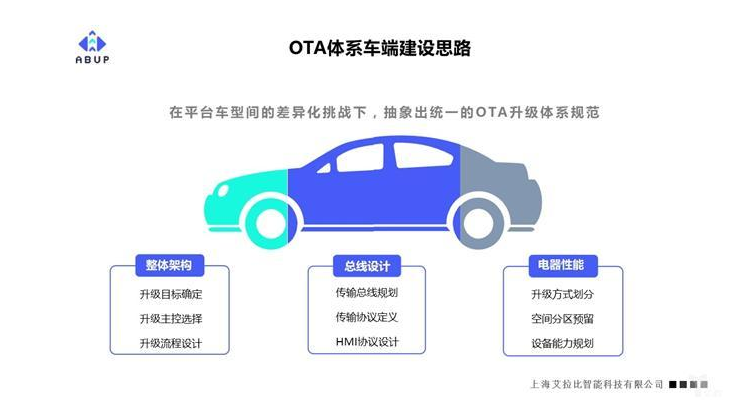 近日,億歐汽車邀請到了艾拉比總裁芮亞楠,基于其在電子、軟件行業(yè)12年的從業(yè)經驗,請他為我們具體解析智能網聯汽車OTA體系的設計與實踐。ABUP艾拉比智能科技專注為汽車、物聯網領域合作伙伴提供專業(yè)OTA升級技術解決方案和定制化服務。該公司目前正式合作的客戶包括比亞迪、江淮、上汽通用、上汽乘用車、長城汽車等主機廠,以及國內Tier 1供應商等,具備一定合作經驗與技術基礎。