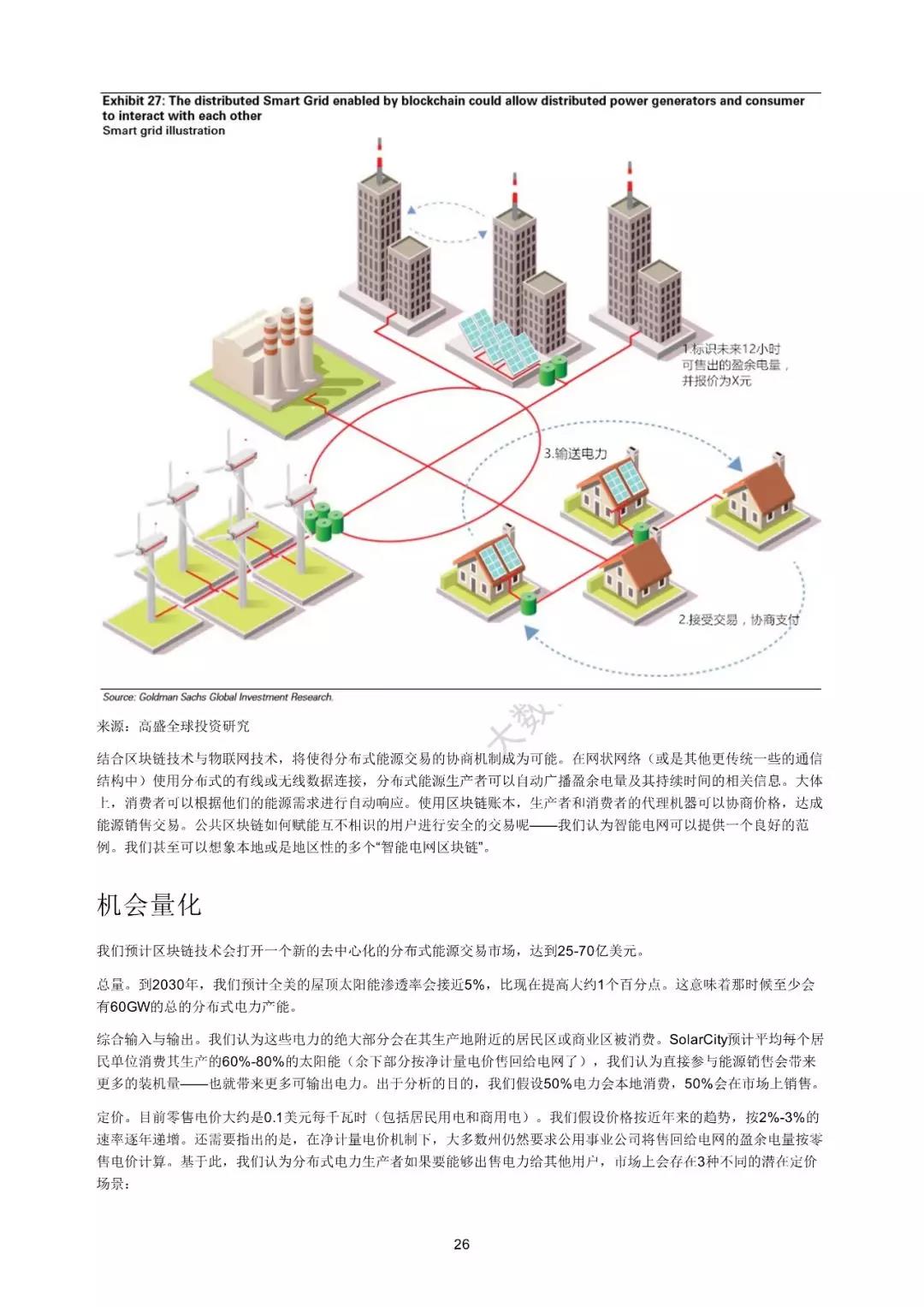以下為高盛報告中有關區(qū)塊鏈如何構筑分布式智能電網(wǎng)的內容: