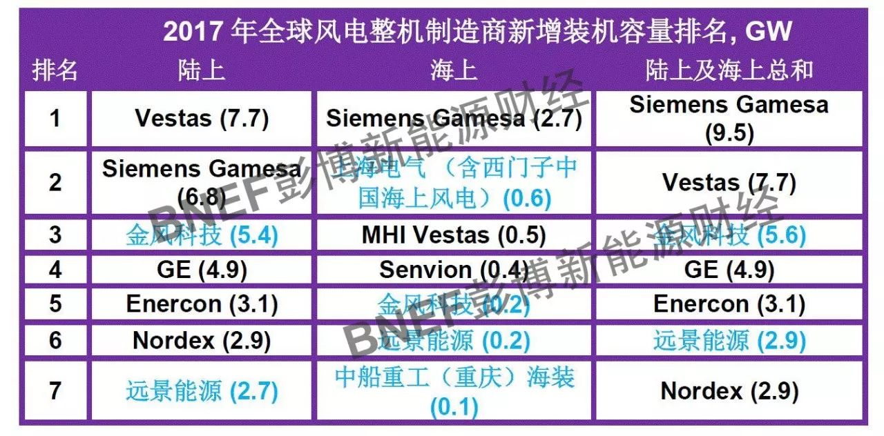 此裝機(jī)容量數(shù)據(jù)基于彭博新能源財(cái)經(jīng)可再生能源項(xiàng)目數(shù)據(jù)庫(kù)以及企業(yè)遞交的項(xiàng)目清單核查。中國(guó)整機(jī)制造商的裝機(jī)容量指吊裝容量,非并網(wǎng)容量,并只包含2018年1月24日之前經(jīng)彭博新能源財(cái)經(jīng)數(shù)據(jù)庫(kù)確認(rèn)完成吊裝的項(xiàng)目容量(包含經(jīng)確認(rèn)的部分吊裝完成裝機(jī)容量)。