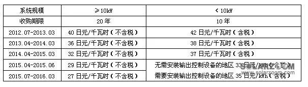 日本光伏 “固定價(jià)格買取制度” (FIT)價(jià)格歷年變化