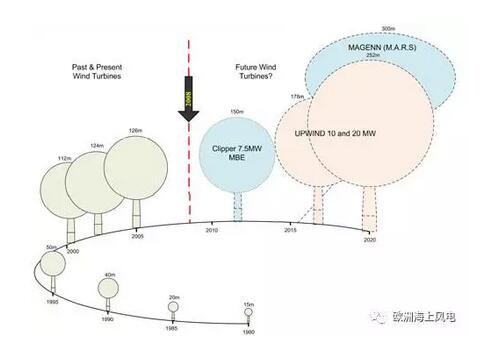 Norfolk Vanguard 計劃于2025年并網(wǎng)發(fā)電,屆時將會有10MW以上的風機投入市場,但根據(jù)?rsted(原DONG Energy公司)計劃在2024年開工的海上風場設(shè)計方案,屆時比較可能的最大單機容量會到15MW。而目前官方公布的計劃設(shè)計制造的最大容量風機為Vestas的V164-9.5MW。