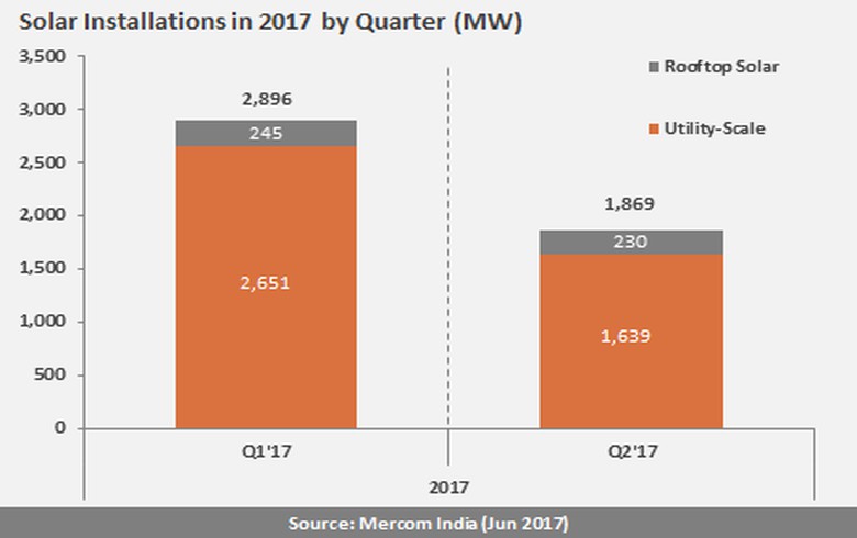 中國儲能網(wǎng)訊:根據(jù)Mercom印度研究公司報道,2017年上半年印度新增太陽能裝機(jī)4765兆瓦,并且印度正在向?qū)崿F(xiàn)全年裝機(jī)10500兆瓦的目標(biāo)努力。