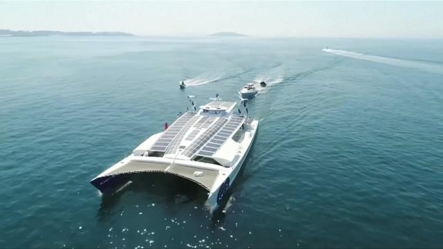 據(jù)介紹,"能源觀察者"號使用太陽能、風(fēng)能和氫能作為混合動力。航行中,它主要依靠太陽能驅(qū)動電動馬達(dá),在太陽能和風(fēng)能不充足的時候,它則將海水中的水分子分解成氫燃料,實現(xiàn)溫室氣體零排放的目標(biāo)。