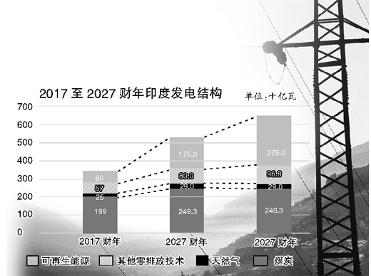 中國儲能網(wǎng)訊:近日,印度中央電力管理局公布了第三份《國家電力規(guī)劃》(草案),對印度未來十年的電力需求及發(fā)展做出了預(yù)測和建議。該規(guī)劃草案預(yù)計,2027年前,可再生能源、核電、大水電等非化石燃料將占印度發(fā)電裝機容量的一半以上(56.5%)。該草案同時提出,為實現(xiàn)2022年可再生能源發(fā)電裝機175吉瓦的目標(biāo)(該目標(biāo)也與印度的《巴黎協(xié)定》承諾相一致),且考慮到目前已有50吉瓦煤電項目在建,印度至少在2027年前無需新建任何煤電產(chǎn)能。