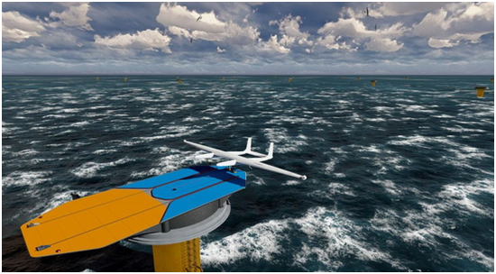 Ampyx Power AWES讓固定翼無人機取代風(fēng)機轉(zhuǎn)動子葉片來引發(fā)氣流:飛行器上有一根連接著地面發(fā)電機的纜線,無人機在200米至450米空域自動沿8字形軌跡飛行,通過不斷拉扯纜線以帶動發(fā)電機發(fā)電。當(dāng)750米長的纜線拉盡后,無人機便會自動下降,讓絞盤回收纜線,然后再次飛行。