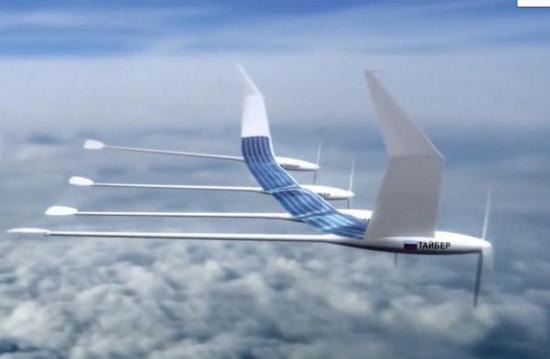 資料圖:俄羅斯“貓頭鷹”太陽能高空無人機的模擬圖