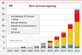 Wiki-Solar創(chuàng)始人沃爾夫認為:“我們可能會在2017年創(chuàng)下另一項記錄,但其表示越來越難以預測。印度和智利市場仍然表現(xiàn)很強勁,而巴西和澳大利亞產(chǎn)能將進一步擴大。歐洲市場的消亡令人失望,我們希望美國在聯(lián)邦政府改變后仍然保持活力?!?